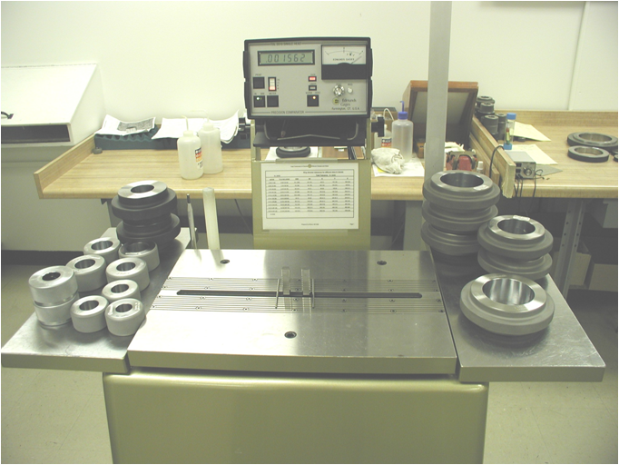 這是一臺在全球很多校準(zhǔn)實驗室采用的標(biāo)定環(huán)規(guī)的計量設(shè)備??梢杂糜跈z定ASME X,XX,XXX級精度的環(huán)規(guī),相當(dāng)于可以檢定國內(nèi)二等環(huán)規(guī)。 通過一整套完善的量值傳遞機(jī)構(gòu)可以快速精確的找到環(huán)規(guī)的直徑拐點,這其中其最大作用的是兩只消除了摩擦力影響的位移傳感器。這是一臺可以測量百萬分之一級內(nèi)外尺寸的儀器,同時可以用來測量一些高精度的盤類零件。